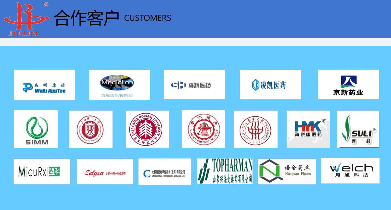上海積坤化工科技有限公司主要生產銷售"JK"'牌玻璃儀器,勞防用品,辦公用品,實驗室儀器設備等產品,是專業設計,配備化學實驗室,集銷售玻璃儀器、實驗用品、實驗設備于一體的私營法人企業,生產燒瓶,燒杯,試管,比色管,層析柱,恒壓滴液漏斗等玻璃儀器制品,銷售磁力攪拌器,紫外三用分析儀(臺燈式,手提式,暗箱式),反應釜,旋轉蒸發儀,真空泵,電子天平,控溫儀,調壓器等實驗設備用品